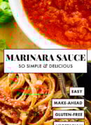 This marinara sauce recipe is the best! Youโll only need 5 basic ingredients, and itโs so easy to make. No chopping required! Recipe yields 2 cups sauce (enough for 8 to 16 ounces pasta, depending on how saucy you like it); double if desired.