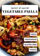 The best vegetable paella recipe! It's loaded with vegetables, chickpeas, and savory, smoky rice. This Spanish dish is vegetarian, vegan and gluten free.