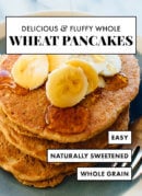 These whole wheat pancakes are delicious and fluffy, with a hint of cinnamon. Theyโre naturally sweetened with maple syrup instead of sugar. So good!